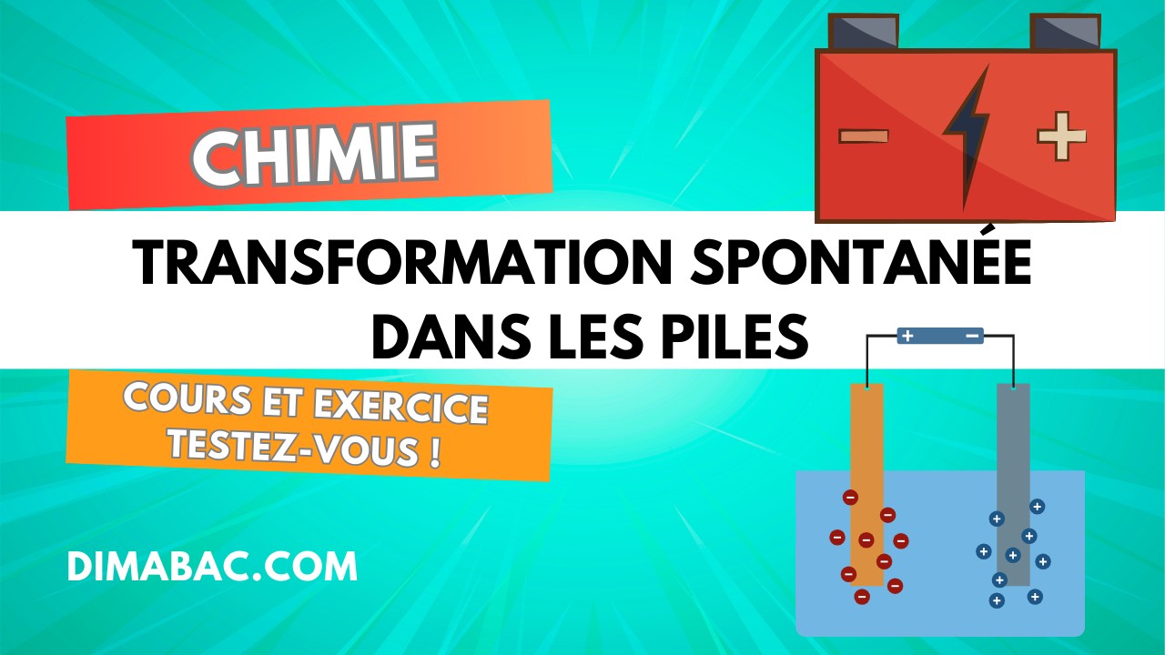 Cours de chimie (2ème Bac SM, PC et SVT) sur le fonctionnement des piles électrochimiques : polarité, demi-équations aux électrodes, évolution spontanée et étude quantitative du courant. Avec exercices corrigés pour maîtriser les calculs