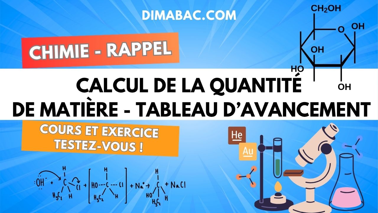 Calcul de la quantité de matière initiale est la première étape indispensable pour construire un tableau d'avancement. Cet outil permet ensuite de décrire l'état d'un système chimique et de déterminer l'avancement maximal ainsi que le réactif limitant.